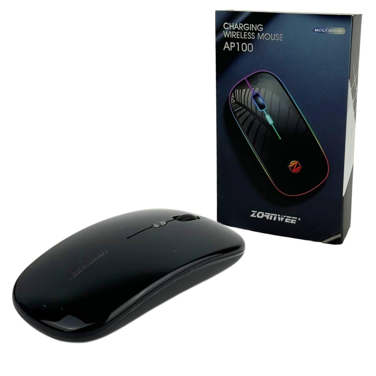 AP100 – бездротова мишка з акумулятором для роботи та ігор. Має яскравий і стильний дизайн. Мишка відмінно лягає в долоні і не завдає жодного дискомфорту при довгому використанні, оскільки має зручну конструкцію. Максимальна довжина дистанції миші 10 метрів. Завдяки роздільній здатності курсор на екрані рухається плавно та швидко.Головними особливостями мишки є безшумні клавіші і різнобарвне, яскраве підсвічування. Живлення – вбудований акумулятор (підзаряджається через microUSB на корпусі миші. Кабель не йде в комплекті).